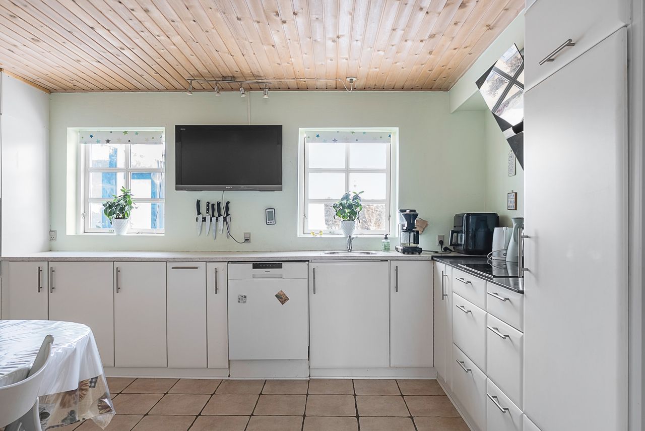 Boligen rummer 136 m² og byder på en indretning, der passer godt til den unge familie. Køkken og stue ligger i forbindelse med hinanden og danner et naturligt samlingspunkt i hjemmet. Her er plads til både legehjørne, spisebord og sofaafdeling.