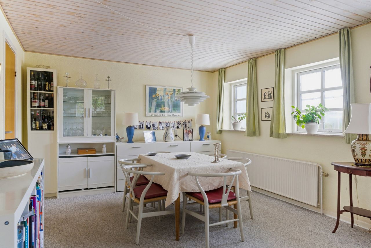 Huset indeholder flere værelser, som kan indrettes som børneværelser, soveværelse eller hjemmekontor, samt badeværelse og bryggers med egen indgang, praktisk i en travl hverdag. Den indbyggede udestue giver ekstra plads og kan fungere som legerum, opholdsrum eller et fristed med udsigt til haven.