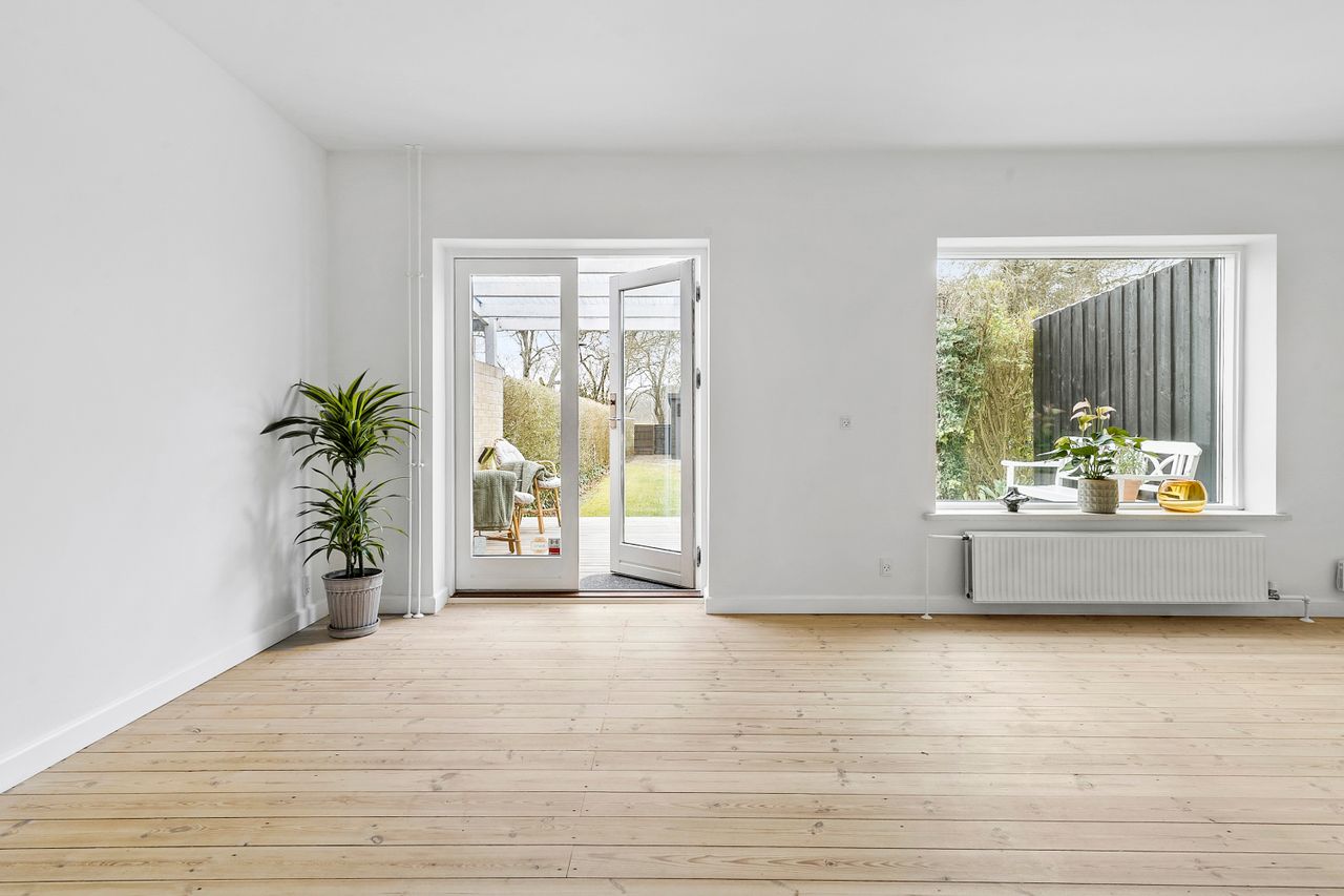 Husets største kvalitet er dog uden tvivl den fantastiske placering. Med en af de største grunde på Njalsvej får du en rummelig og solrig have, der vender mod vest – perfekt til at nyde eftermiddags- og aftensolen på terrassen. Haven grænser direkte op til det grønne bælte ved Langesøstien, hvilket giver dig en ugeneret udsigt og gode muligheder for at komme hurtigt til bymidten på cykel.