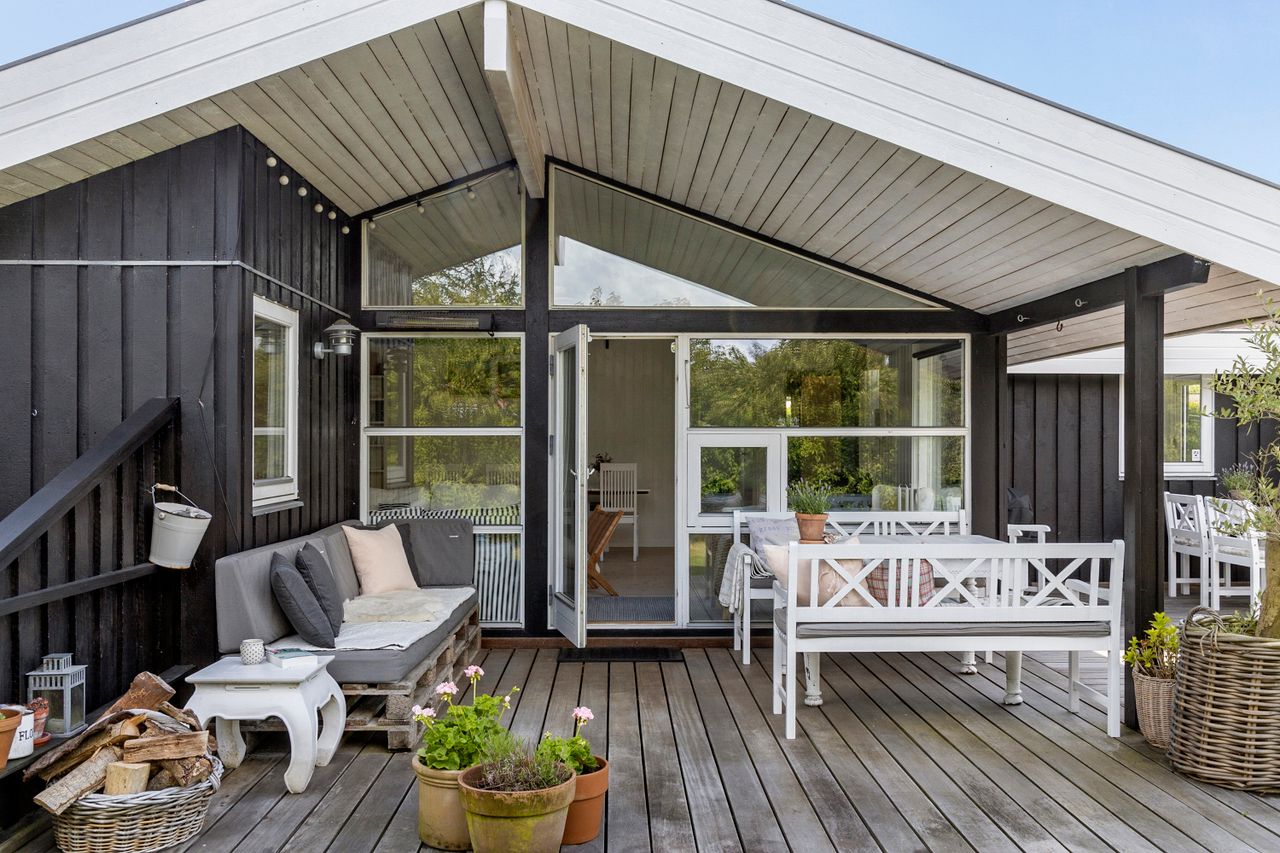 Boligen emmer af charme og sommerhusstemning, og planløsningen er gennemtænkt med plads til både samvær og privatliv. Der er loft til kip i alle rum og den store opholdsstue er lys og hyggelig. Her er der direkte udgang til den store terrasse. Huset rummer 3 terrasser, så du kan følge solen dagen igennem - eller finde skygge på de varme sommerdage.